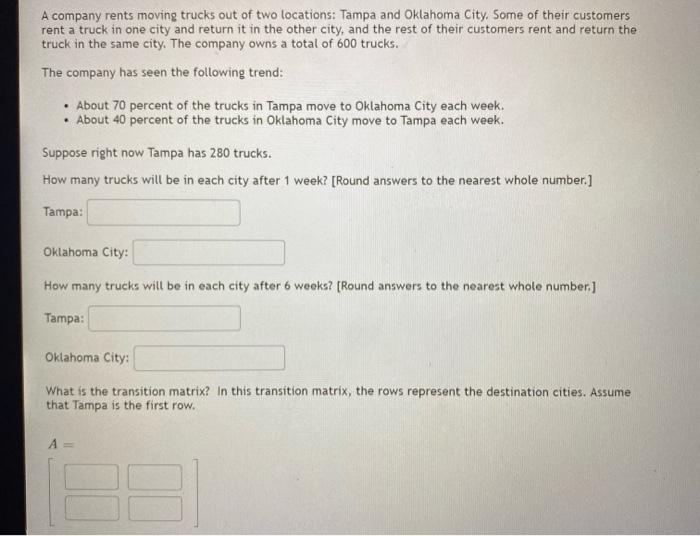 Solved A Company Rents Moving Trucks Out Of Two Locations Chegg Com